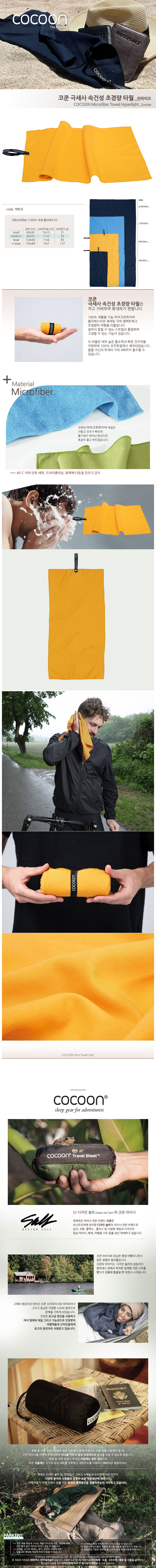 이미지 확대보기[TH13-M] 코쿤 극세사 속건성 초경량 스포츠 여행용 타월 선라이즈 (M) 90X50cm 100% 재생 및 재활용 가능 원단