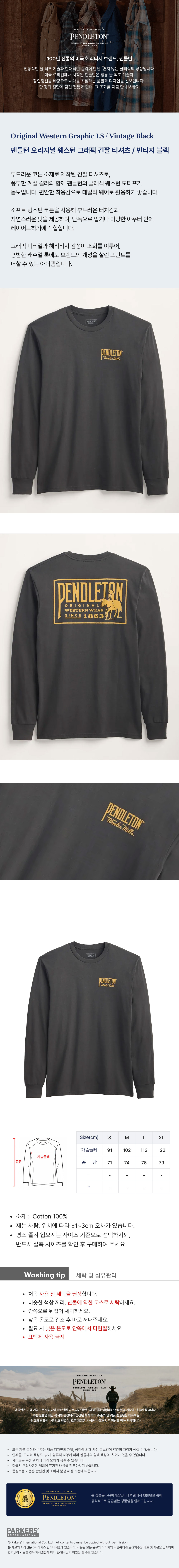 이미지 확대보기[RG1420-74736] 펜들턴 오리지널 웨스턴 그래픽 긴팔 티셔츠 / 빈티지 블랙