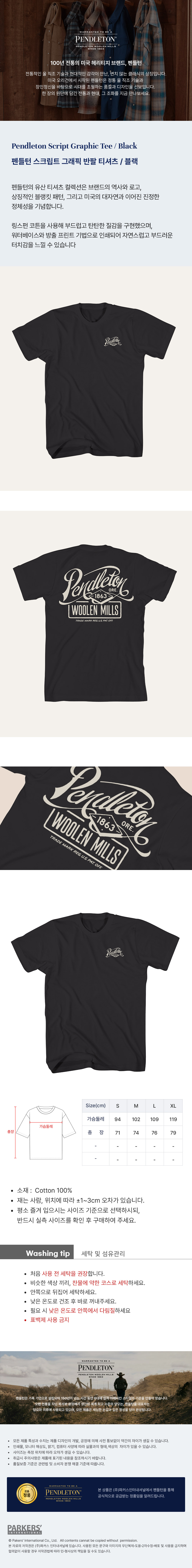 제조자, 수입품의 경우 수입자를 함께 표기 펜들턴,파커스인터내셔널