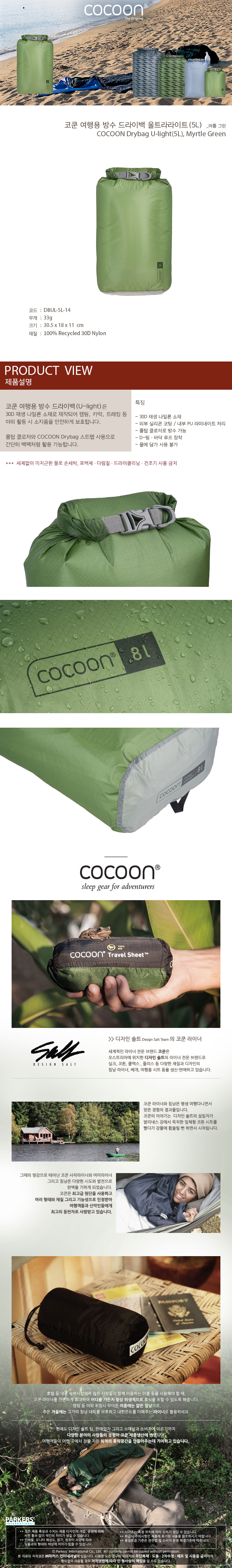 [DBUL-5L-14] 코쿤 여행용 방수 드라이백 울트라라이트 5L - 머틀 그린