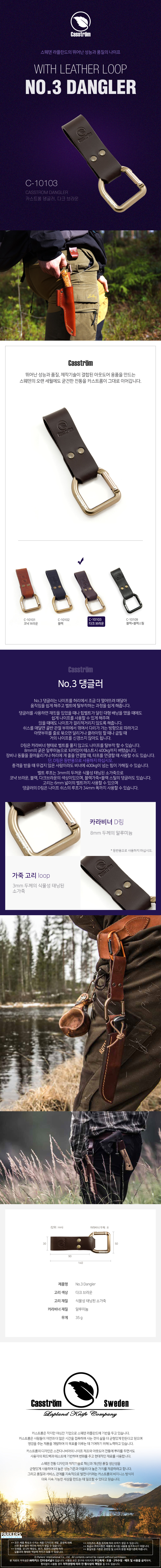 • [C-10103] 카스트롬 No.3 댕글러 탈부착 나이프 고리 D링 카라비너 (다크브라운)